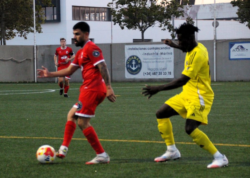 Ya Atravesando el minuto 12 el colegiado pita una falta en contra del conjunto mallorquín a unos cinco metros de la frontal del área, la ejecuta David Sans mandando el balón que se pierde por línea de fondo. El mister del Formentera Michael Romero. pide a sus hombres una mentalidad positiva y más criterio creativo a la hora de salir de la presión rival. Y acierta plenamente el entrenador, ya que pocos minutos después de adelantará en el marcador el conjunto pitiuso. Las manecillas del reloj implacable marcaban el minuto 17 y Alberto Moreno no aprovecha un balón largo, ya que la rapidez de Carlos M. Pérez, le permite amarrar el balón, evitando una posible e inminente segunda jugada. En el minuto 22 se produce otra jugada calcada a la anterior. Balón largo en esta ocasión a Angel Capó que se presenta solo, pero una vez más el guardameta le gana la acción de ataque.