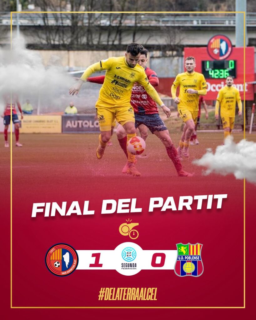 El pitido final confirmó la sorpresa. El Olot celebró una victoria de prestigio, forjada en el esfuerzo, la concentración y la fe, ante un Poblense que perdió el liderato moral del partido, aunque no el de la clasificación.