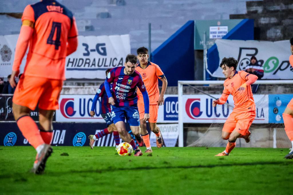 Incidencias: Partido disputado este sábado entre el líder y el 5º clasificado, el filial del Barcelona, en una tarde algo fría en la temperatura, pero caliente en el ambiente ya que el Municipal presento una gran entrada de público y el partido no defraudo a los asistentes. Campo muy pesado por las lluvias caídas durante toda la semana. El “clamater” de las fiestas de Sant Antoni, Pep Cirer, realizó el saque de honor antes de empezar el encuentro.