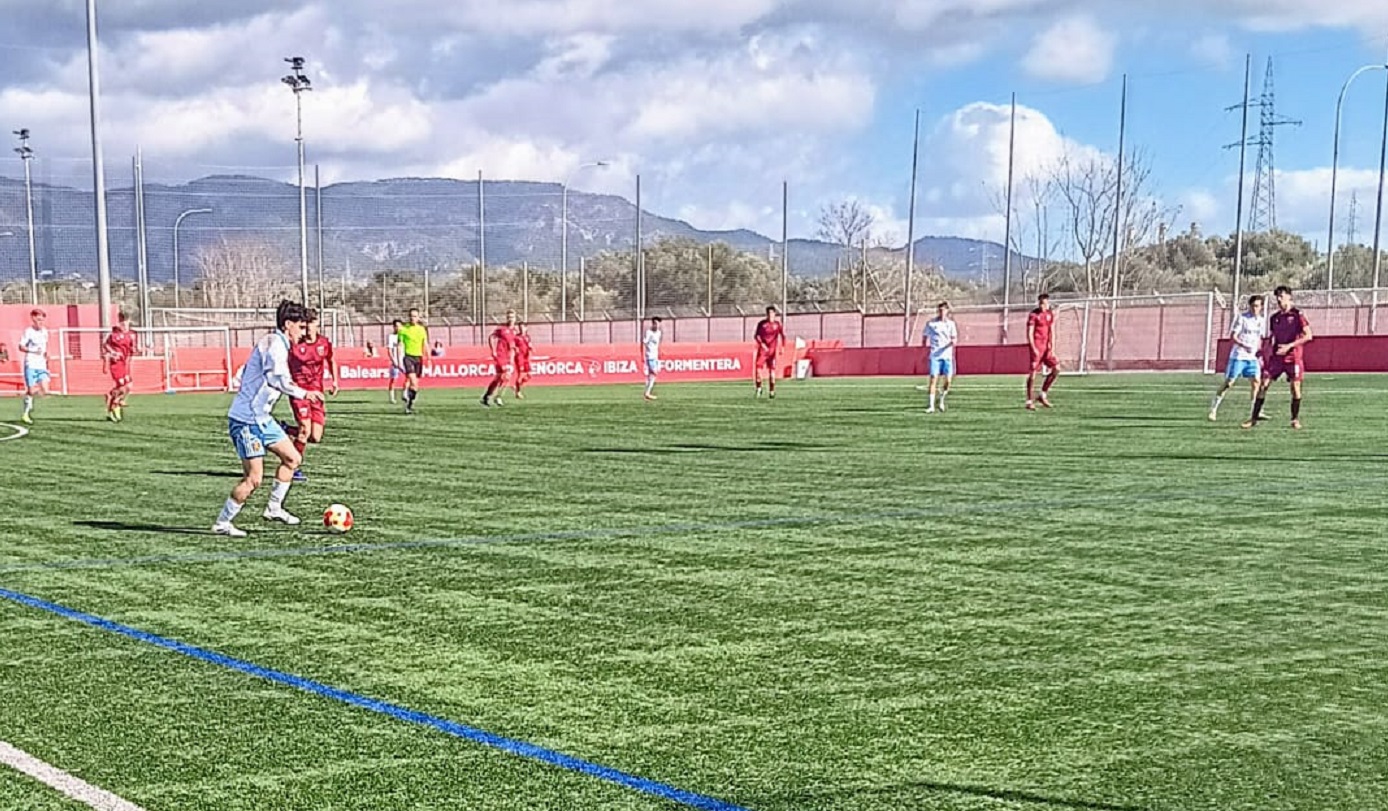 El partido es vivo, jugado con intensidad, y con dos equipos que quieren sumar los tres guarismos puestos en liza esta matinal en Son Bibiloni. En el minuto 10 Luís Cazorla ejecuta un córnet sobre el punto de máximo castigo, pero previo salto de Manuel Tristan, detiene con seguridad en las alturas. Encontrándonos en el minuto 12 Alejandro Laseca, remata un balón lateral y el meta del conjunto de Son Bibiloni y desde el suelo detiene con solvencia. En el minuto 12 el colegiado castiga con una falta al equipo maño, la ejecuta César Guzman y manda el balón por encima del palo largo de Marcos Marian.