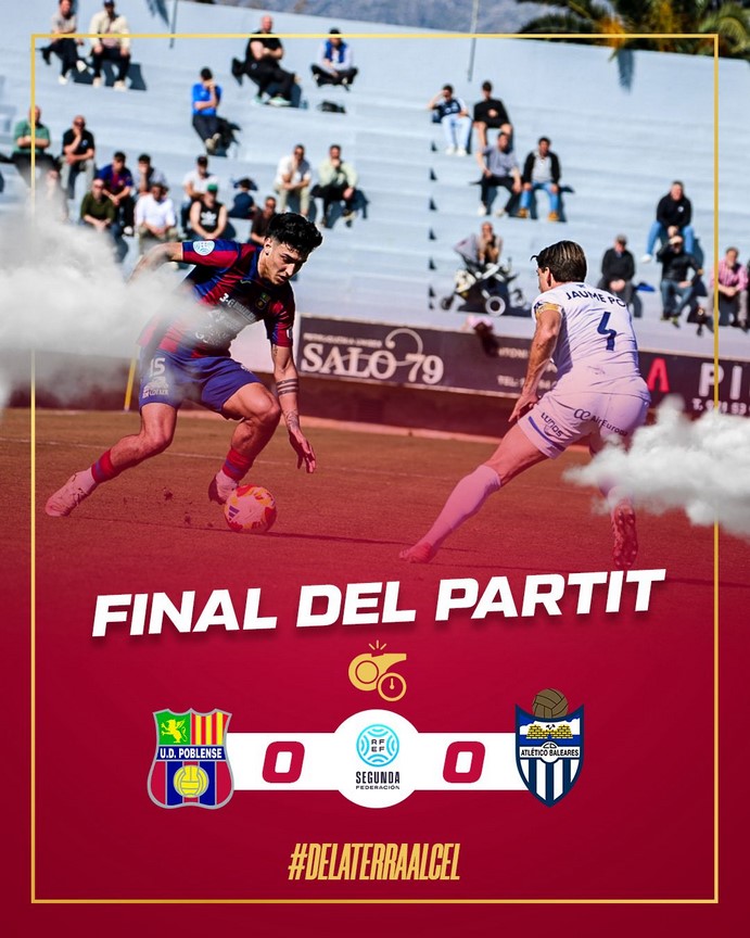 El Poblense y el Atlético Baleares empataron sin goles en Sa Pobla en un duelo marcado por el control visitante y la resistencia local. Pese a la superioridad táctica del Baleares, el líder exhibió su solidez defensiva para mantenerse como el equipo menos goleado de la categoría con solo 14 tantos encajados.