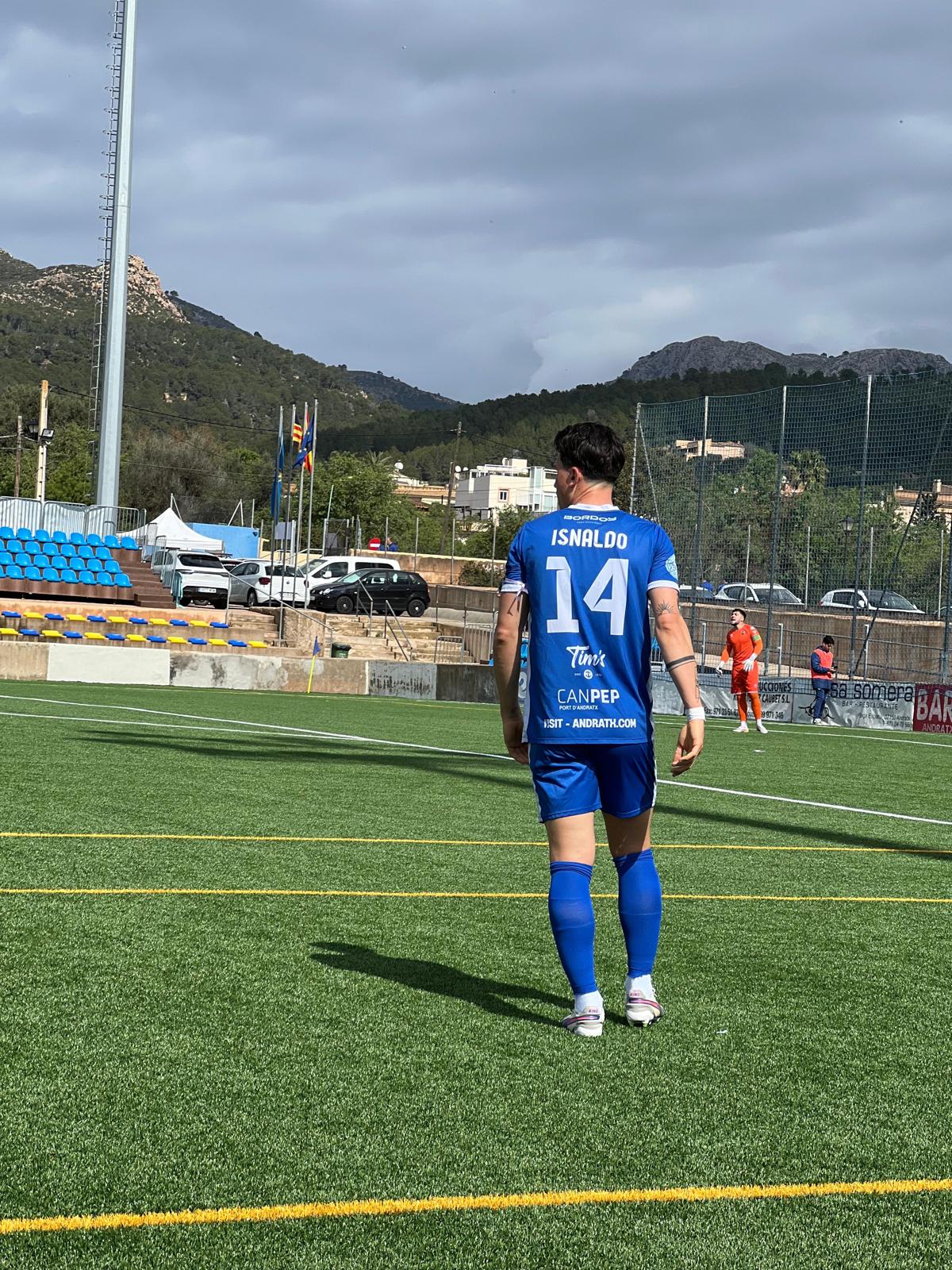 En el minuto 45 a punto de finalizar el primer tiempo córner a favor del Andratx a cargo del capitán “ mágic Llabres” al corazón del área. Remate de cabeza de Garrido y balón muerto que intenta Hermelo y en el rechace el jugador Eugenio Isnaldo dispara a bocajarro para subir el 1-0, gol del más listo de la clase, segundo gol del argentino que está en forma, lástima es la lesión de hoy que se tiene que retirar al descanso.