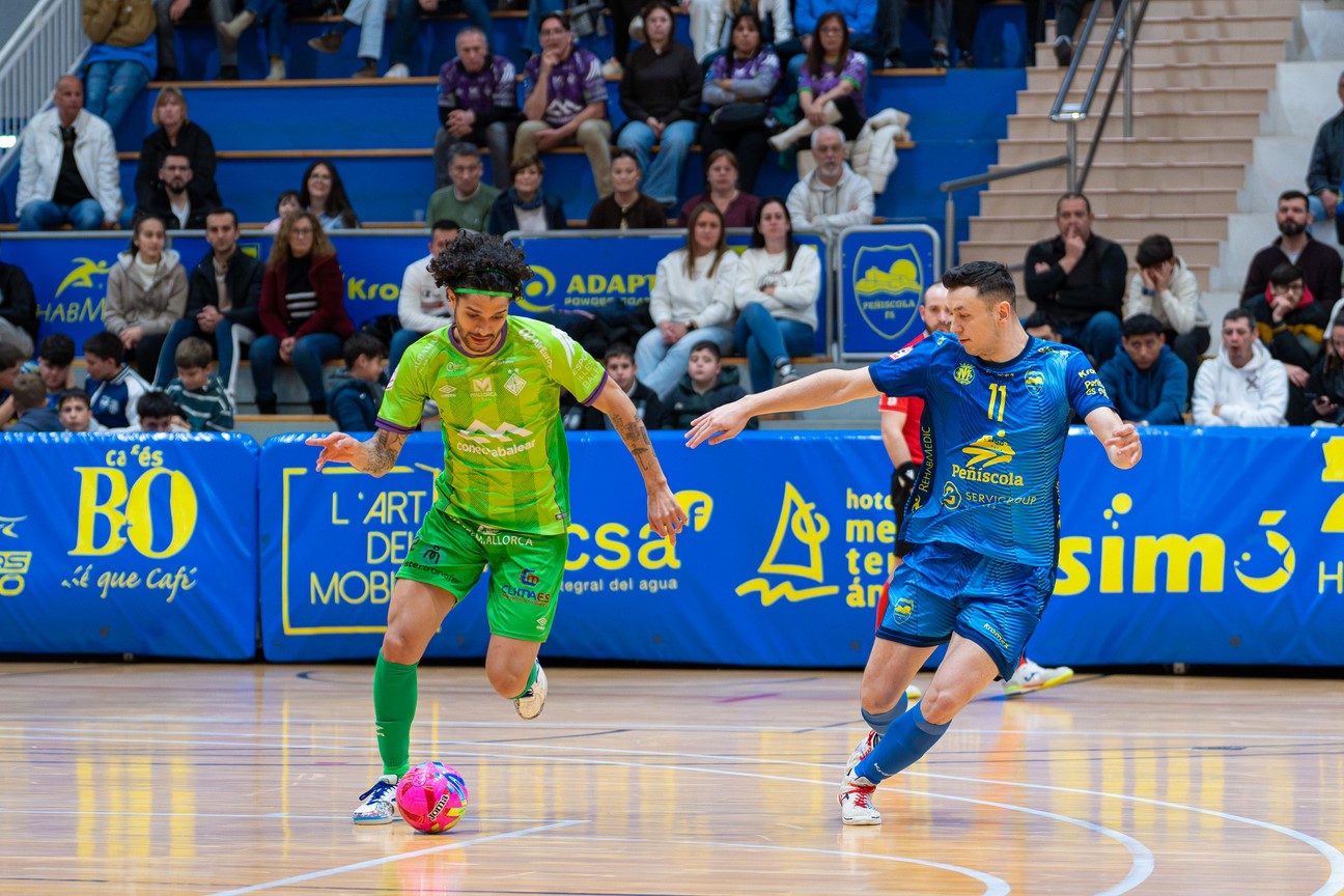 El Illes Balears Palma Futsal cayó este sábado en el Pabellón Juan Vizcarro frente al Servigroup Peñíscola (7-6) en el encuentro correspondiente a la jornada 22 de la Primera División. En un partido frenético y cargado de alternativas, los mallorquines reaccionaron en el tramo final, pero se quedaron a las puertas de completar la remontada.