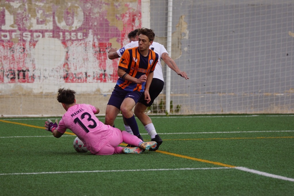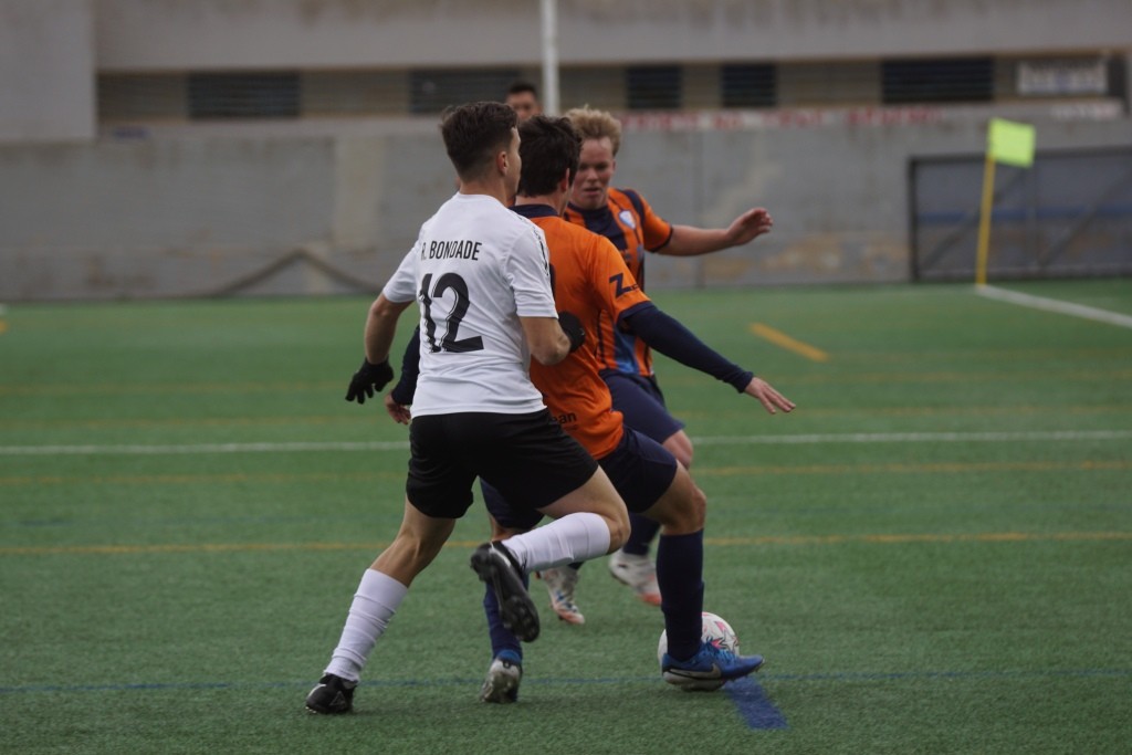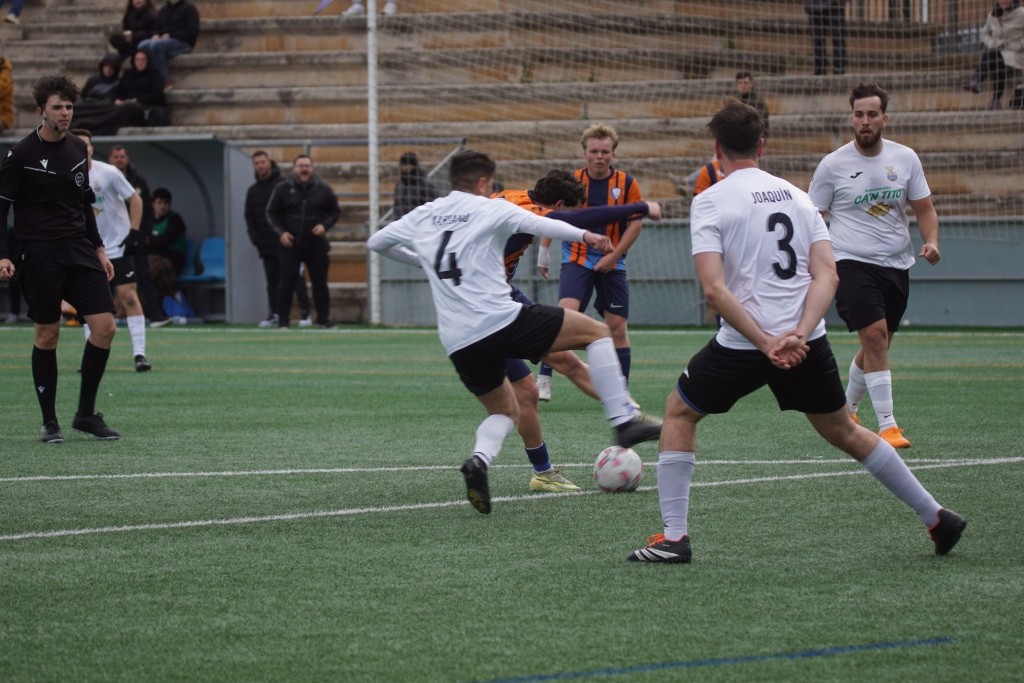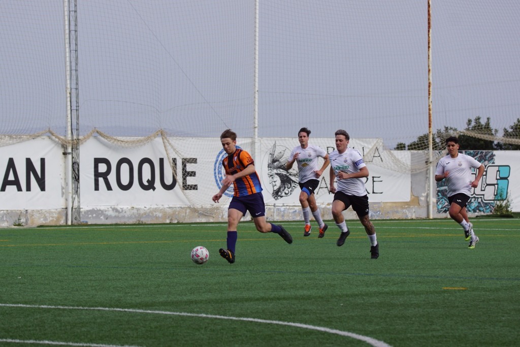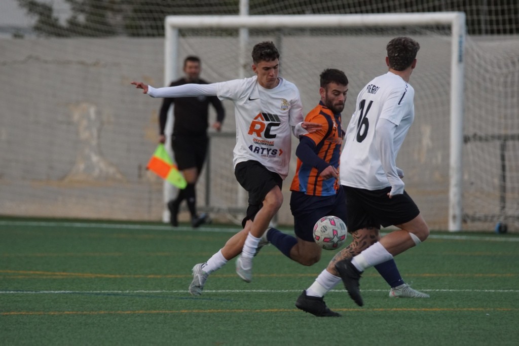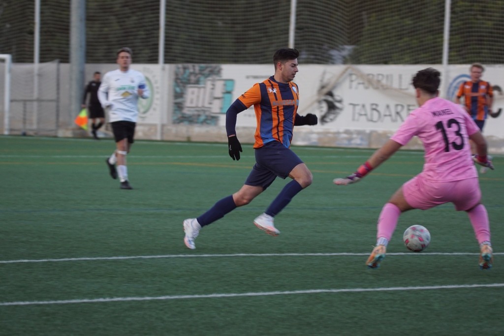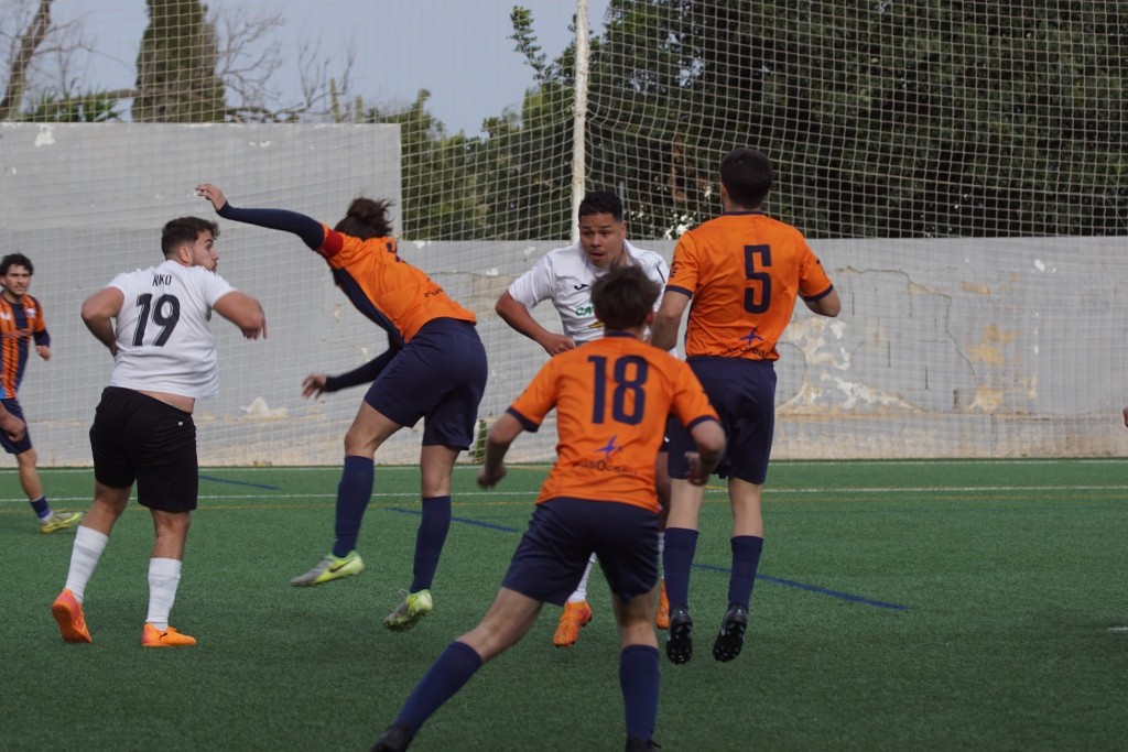 Dicen los que saben de esto que no hay tácticas buenas o malas, las tácticas las hacen buenas o malas los jugadores que dispones en el terreno de juego. Plantear un partido con una presión en tres cuartos de campo contrario con tu línea defensiva a escasos dos metros del centro del campo, puedes pensar que es un planteamiento valiente. Pero cuando es más que evidente que la presión no es efectiva y que tu línea defensiva no es ni rápida ni contundente, por tanto ese planteamiento no te funciona pero lo mantienes durante todo el partido, esa táctica más que valiente es suicida. Pues eso es lo que hizo en Son Roca, en opinión de este humilde cronista, el Rotlet Molinar, suicidarse futbolísticamente con ese planteamiento. Los visitantes apenas dispararon en una ocasión entre palos, minuto 36, en una falta directa que lanzó Joan Miquel Comas y que el cancerbero local Jordi Llasser, un espectador más en Son Roca, despejó a saque de esquina. Debo darle la enhorabuena al equipo local, en un partido donde lo normal es “irse” del encuentro visto lo visto en el terreno de juego, los jugadores locales, con muchas rotaciones, mantuvieron una intensidad alta durante todo el partido con una actitud seria y siempre respetando al contrario.