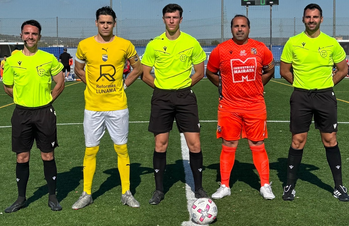 Arbitros y capitanes de ambos equipos